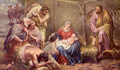 在伯利恆郊外,有些牧羊人夜間露宿,輪流看守羊群。主的天使向他們顯現;主的榮光四面照射他們,他們就非常驚惶。可是天使對他們說:「不要害怕!我有好消息告訴你們;這消息要帶給萬民極大的喜樂。今天,在大衛的城裏,你們的拯救者─主基督已經誕生了!你們會看見一個嬰兒,用布包著,躺在馬槽裏;那就是要給你們的記號。」忽然,有一大隊天軍跟那天使一起出現,頌讚上帝說:願榮耀歸於至高之處的上帝!願和平歸給地上他所喜愛的人!天使離開他們回天上去的時候,牧羊人彼此說:「我們進伯利恆城去,看主所告訴我們那已經發生了的事。」於是他們急忙趕去,找到了馬利亞、約瑟,和躺在馬槽裏的嬰兒。牧羊人看見以後,把天使所說關於嬰兒的事告訴大家。聽見的人對牧羊人的話都很驚訝。馬利亞卻把這一切事牢記在心裏,反覆思想。牧羊人回去,為他們所聽見所看到的事讚美歌頌上帝,因為所發生的事跟天使所告訴他們的相符。