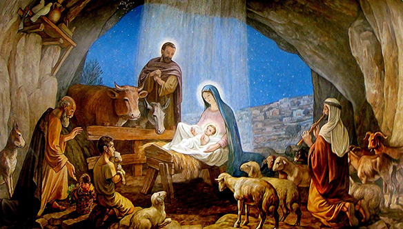 在伯利恆郊外,有些牧羊人夜間露宿,輪流看守羊群。主的天使向他們顯現;主的榮光四面照射他們,他們就非常驚惶。可是天使對他們說:「不要害怕!我有好消息告訴你們;這消息要帶給萬民極大的喜樂。今天,在大衛的城裏,你們的拯救者─主基督已經誕生了!你們會看見一個嬰兒,用布包著,躺在馬槽裏;那就是要給你們的記號。」忽然,有一大隊天軍跟那天使一起出現,頌讚上帝說:願榮耀歸於至高之處的上帝!願和平歸給地上他所喜愛的人!天使離開他們回天上去的時候,牧羊人彼此說:「我們進伯利恆城去,看主所告訴我們那已經發生了的事。」於是他們急忙趕去,找到了馬利亞、約瑟,和躺在馬槽裏的嬰兒。牧羊人看見以後,把天使所說關於嬰兒的事告訴大家。聽見的人對牧羊人的話都很驚訝。馬利亞卻把這一切事牢記在心裏,反覆思想。牧羊人回去,為他們所聽見所看到的事讚美歌頌上帝,因為所發生的事跟天使所告訴他們的相符。